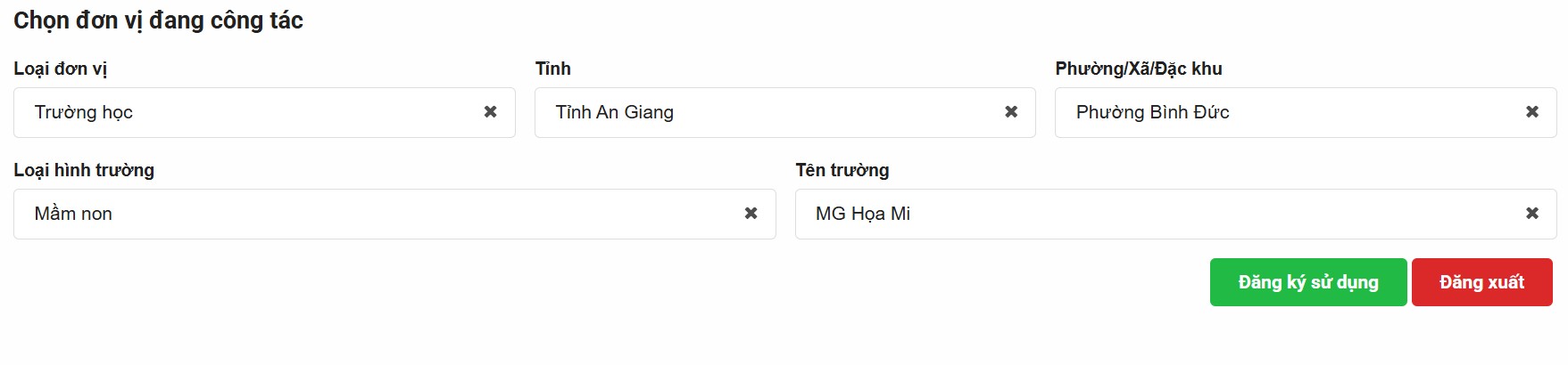 Bước 4: Sau khi đăng nhập thành công phần mềm sẽ hiển thị giao diện chọn đơn vị sử dụng. Thầy/Cô chọn đúng đơn vị mình cần đăng nhập: