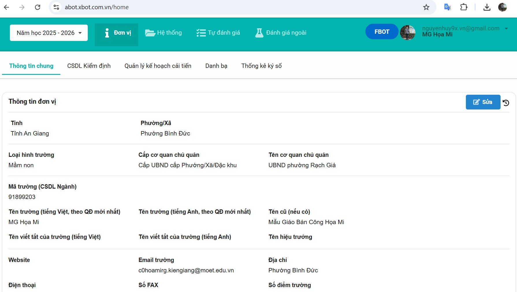 - Tài khoản quản trị của trường: có thể thực hiện thêm email tài khoản cho các thành viên. Nếu chưa được phân quyền vào phần mềm thì Thầy/Cô vui lòng liên hệ đến người quản trị ở đơn vị hoặc bộ phận hỗ trợ của công ty để được phân quyền tài khoản.