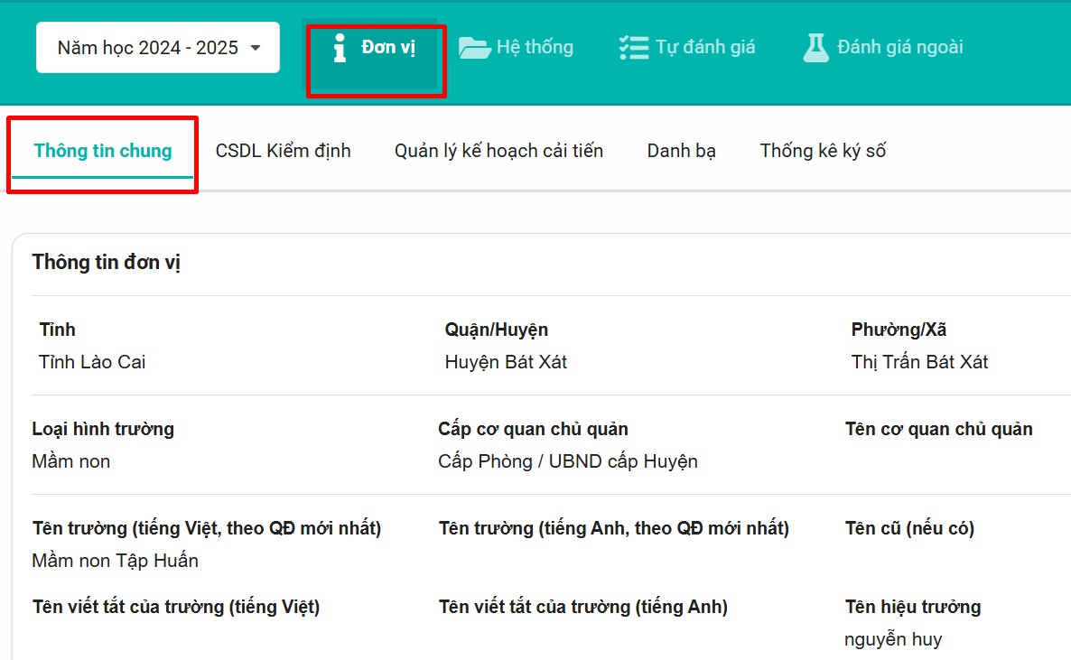 Bước 1: Vào menu Đơn vị -> chọn Thông tin chung