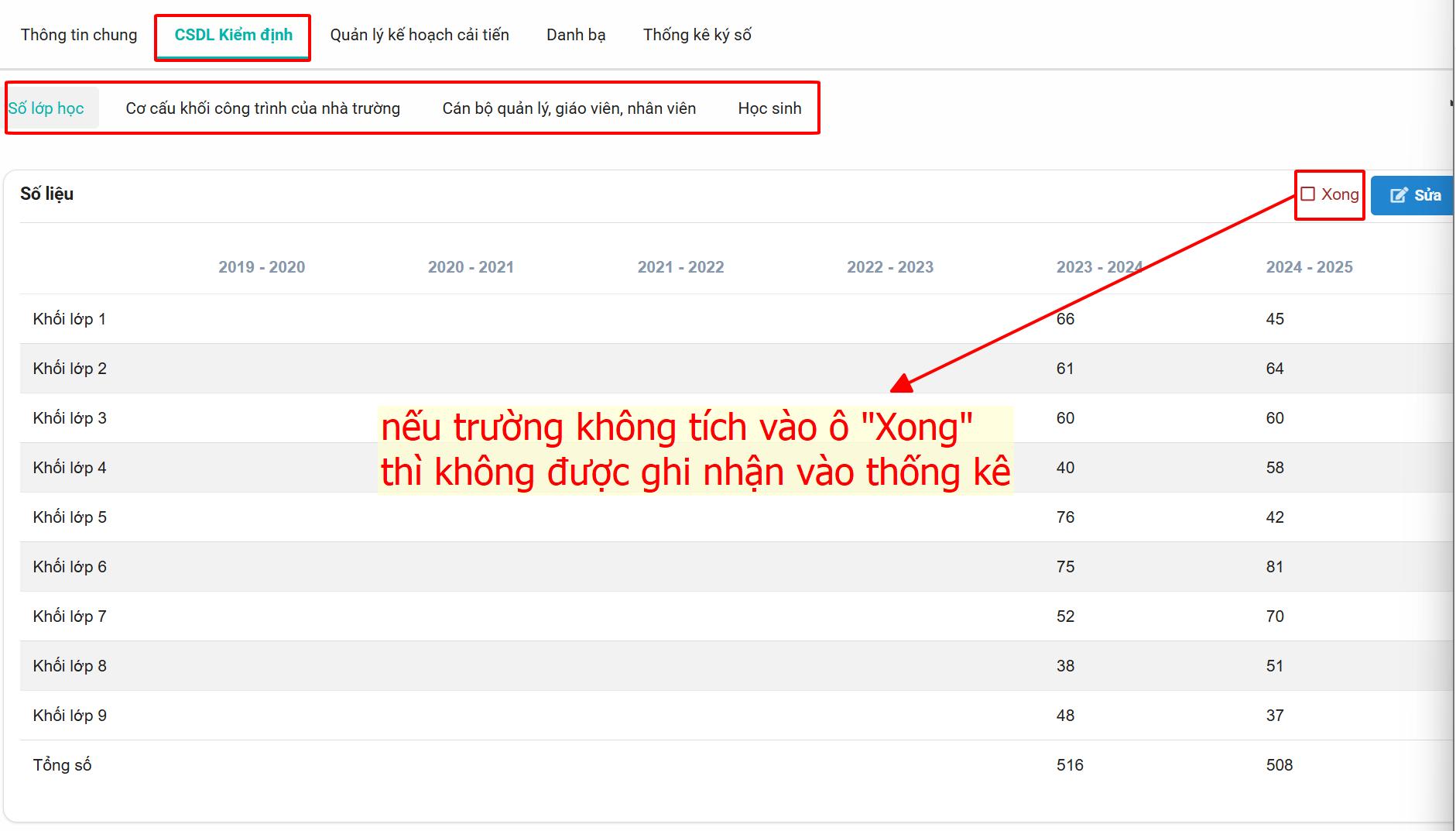 (Nếu trường đã nhập nhưng chưa tích “Xong”, phần mềm vẫn ghi nhận là chưa hoàn thành)