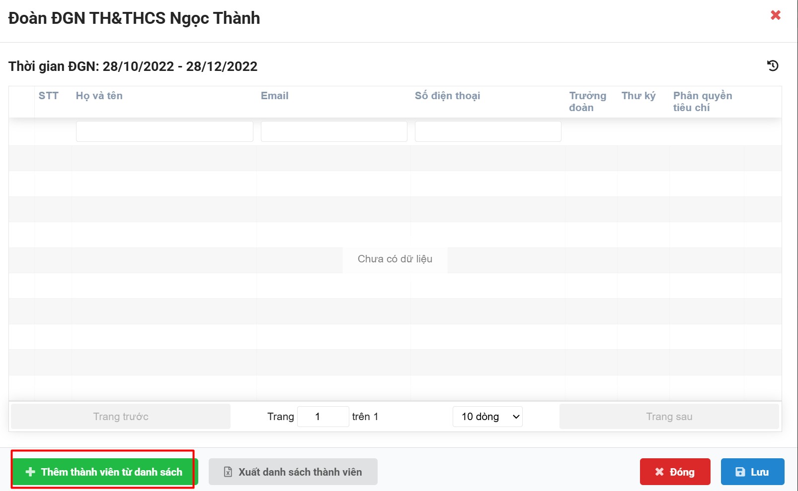 Bước 2: Bấm nút Thêm thành viên từ danh sách để bắt đầu chọn thành viên cho đoàn.