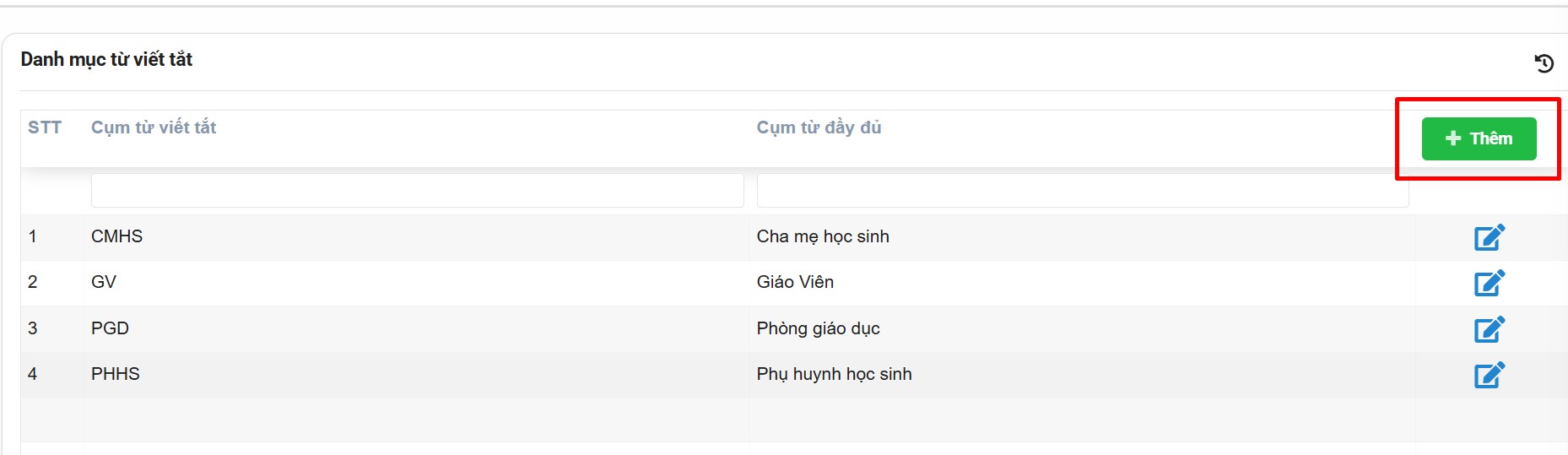 - Từ viết tắt sau khi được khai báo sẽ được phần mềm tự động tổng hợp khi xuất báo cáo tự đánh giá.