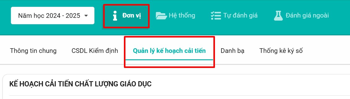 Bước 1: Vào menu Đơn vị → chọn Quản lý kế hoạch cải tiến