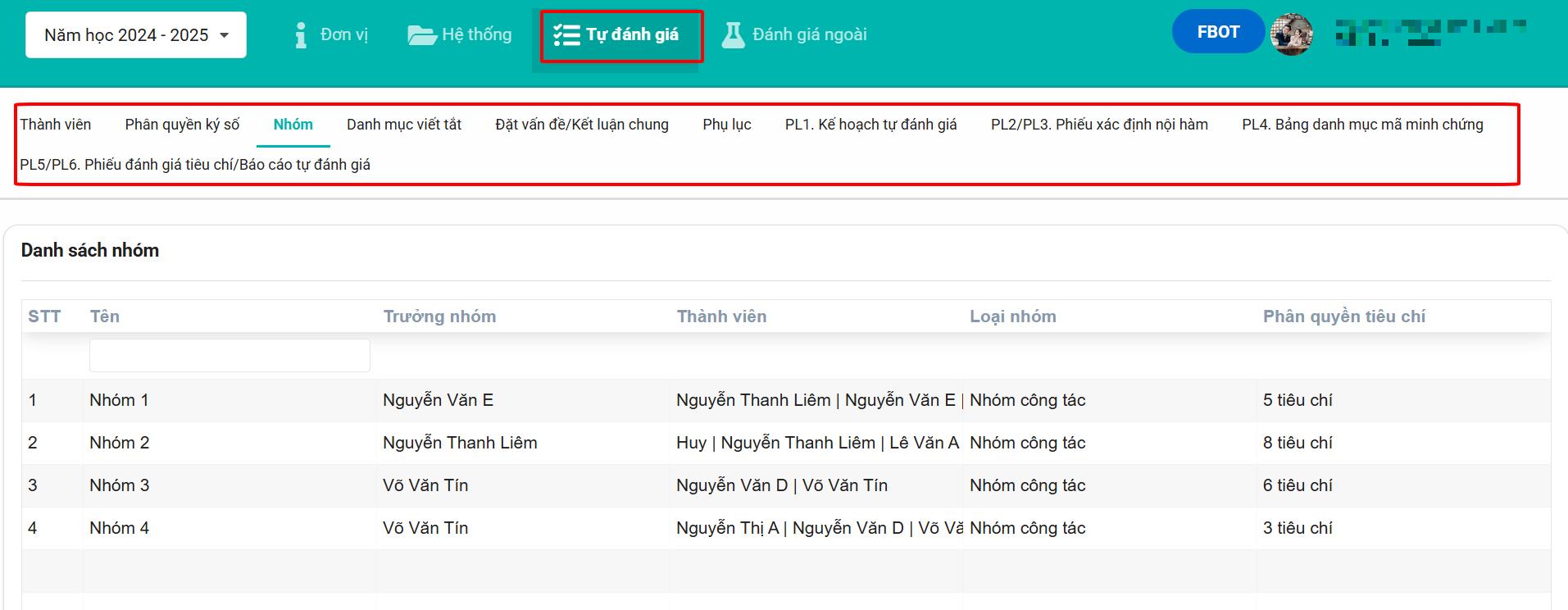 - Danh sách thành viên tự đánh giá của trường