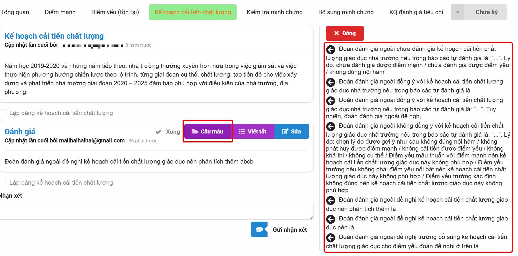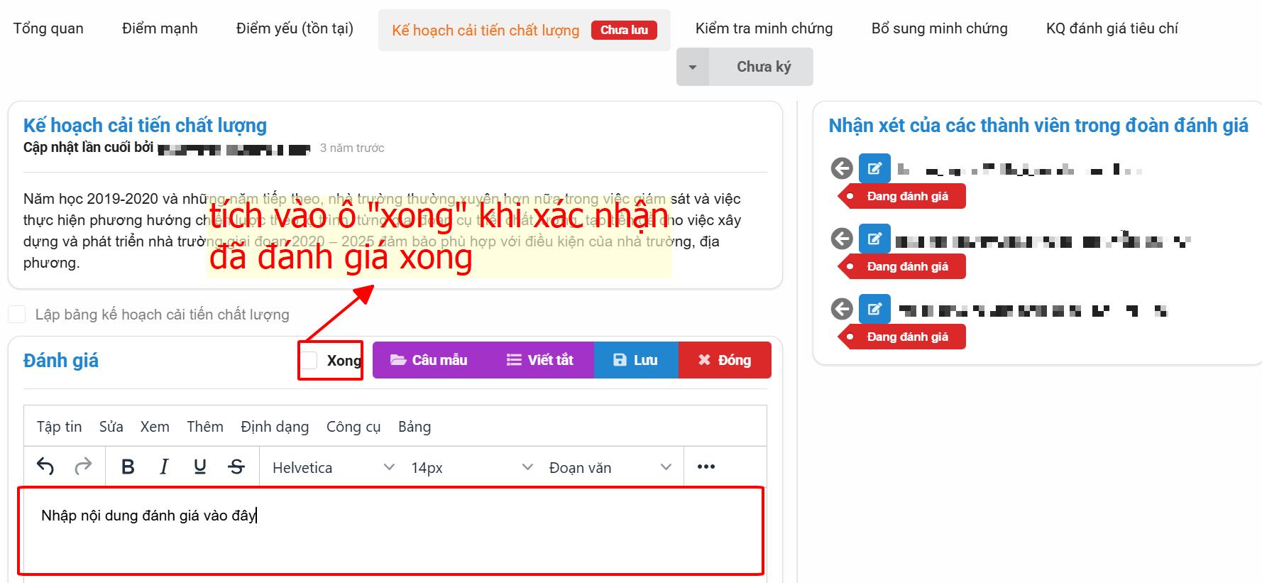 Bước 2: Nhập hoặc tổng hợp nội dung đánh giá