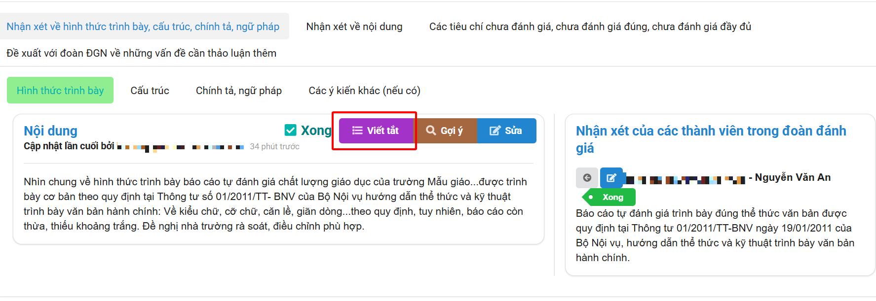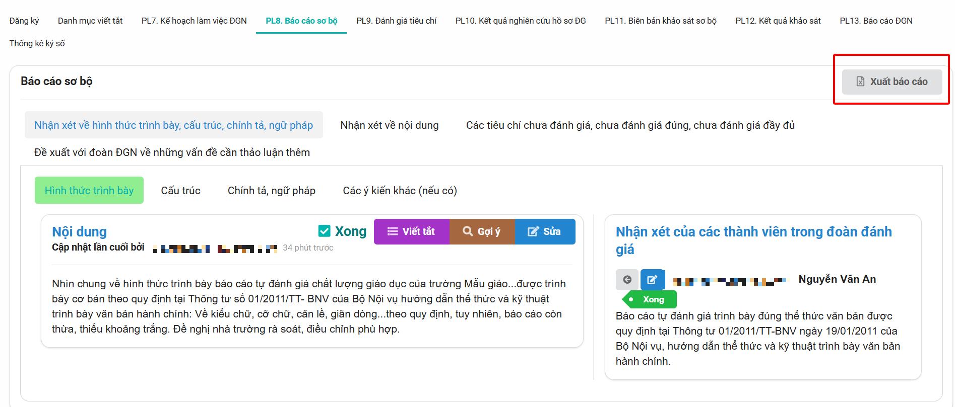 - Trong quá trình tổng hợp, có thể xem lại toàn bộ nội dung thành viên đã nhập để đảm bảo báo cáo cuối cùng phản ánh đúng thực tế.