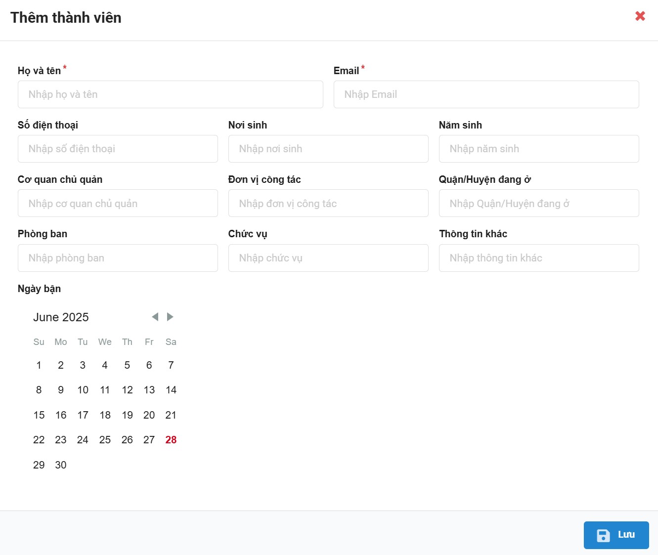 - Không bắt buộc tạo mới mỗi năm: Thầy/Cô có thể sử dụng chức năng “Chuyển dữ liệu” để sao chép danh sách thành viên từ năm trước sang năm hiện tại. Sau đó chỉ cần cập nhật, chỉnh sửa lại thông tin cần thiết, giúp tiết kiệm thời gian và tránh nhập lại từ đầu.