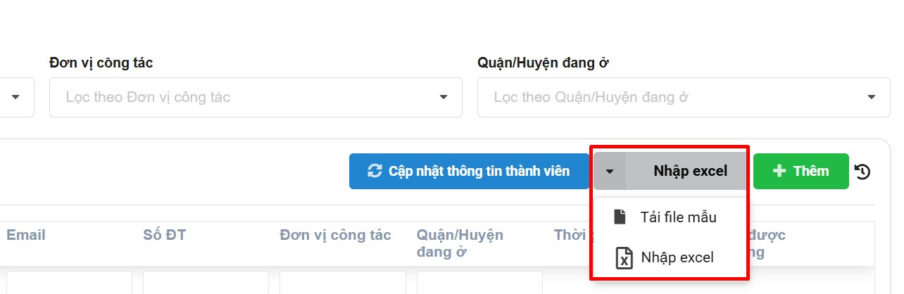 Nhập Excel→ chọnNhập Excelđể tải file vào hệ thống. - Các tài khoản vừa tạo sẽ được hiển thị trong danh sách thành viên ngay bên dưới.
